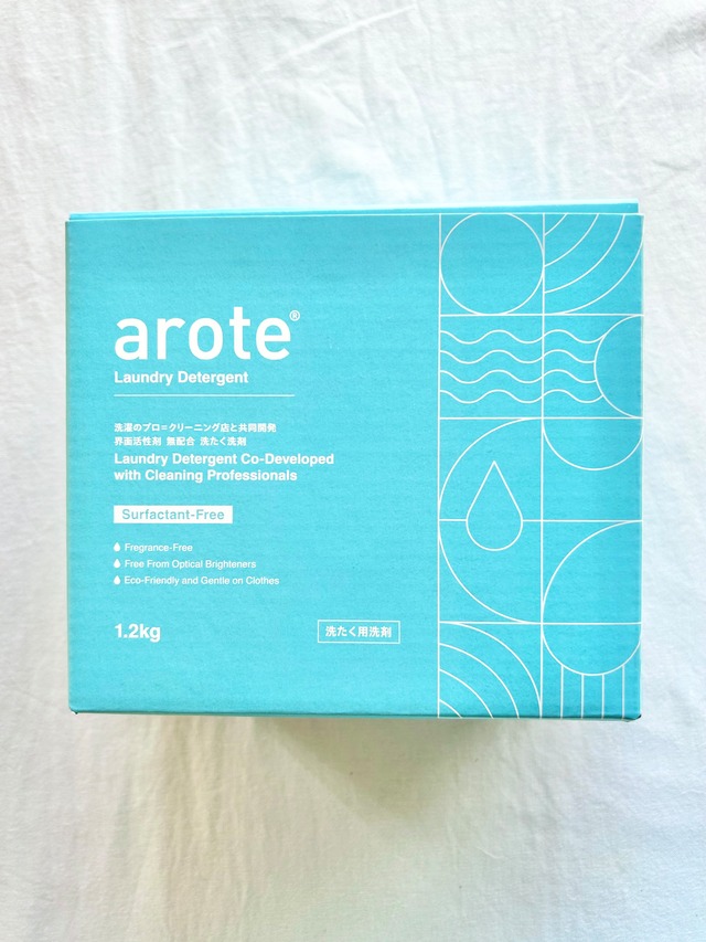 - しぜん 私 よろこぶ せんたく粉 - クリーニング店の現場の声と 洗剤メーカーの開発ノウハウを基に 共同開発された arote ®︎ アロテ 洗剤には欠かせない 界面活性剤の配合を なくすことで 得られるメリットは 多岐にわたります arote®︎で広がる 「新しい洗濯のカタチ」 をお届けします ⚪︎界面活性剤フリー ⚪︎トリニティー酵素®︎配合 タンパク質・脂質・繊維素分解酵素が 幅広い汚れにアタック ⚪︎蛍光増白剤、漂白成分、香料、リン を無配合で環境に配慮 ⚪︎再汚染防止剤を配合 衣類の黒ずみ、黄ばみを抑制 ⚪︎1回すすぎで完了 ! 節水・節電・時短に ⚪︎洗濯槽のカビや汚れ 排水ホースの汚れ防止に ! 品名 : 洗濯用洗浄剤 用途 : 綿・麻・合成繊維用 液性 : 弱アルカリ性 正味量 : 1.2kg 成分 : アルカリ剤(炭酸ナトリウム、重炭酸ナトリウム(重曹))・水軟化剤(クエン酸ナトリウム)・分散剤・再汚染防止剤(カルボキシメチルセルロース)・酵素